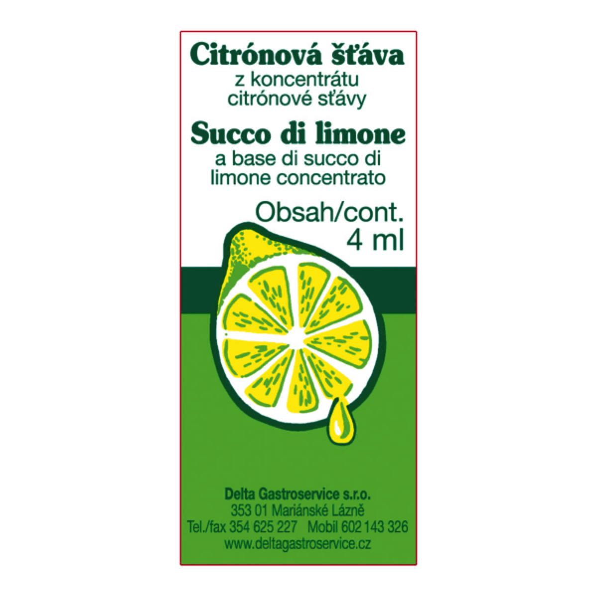 Citronová šťáva v porcíchObj.č.: 173EAN: 8594061134023Balení: V krabici 100 porcí á 4 ml, 6 krabic v kartonuProdejní jednotka: KrabiceMinimální trvanlivost: 12 měsícůSložení: Citronová šťáva z koncentrátu citronové šťávy.