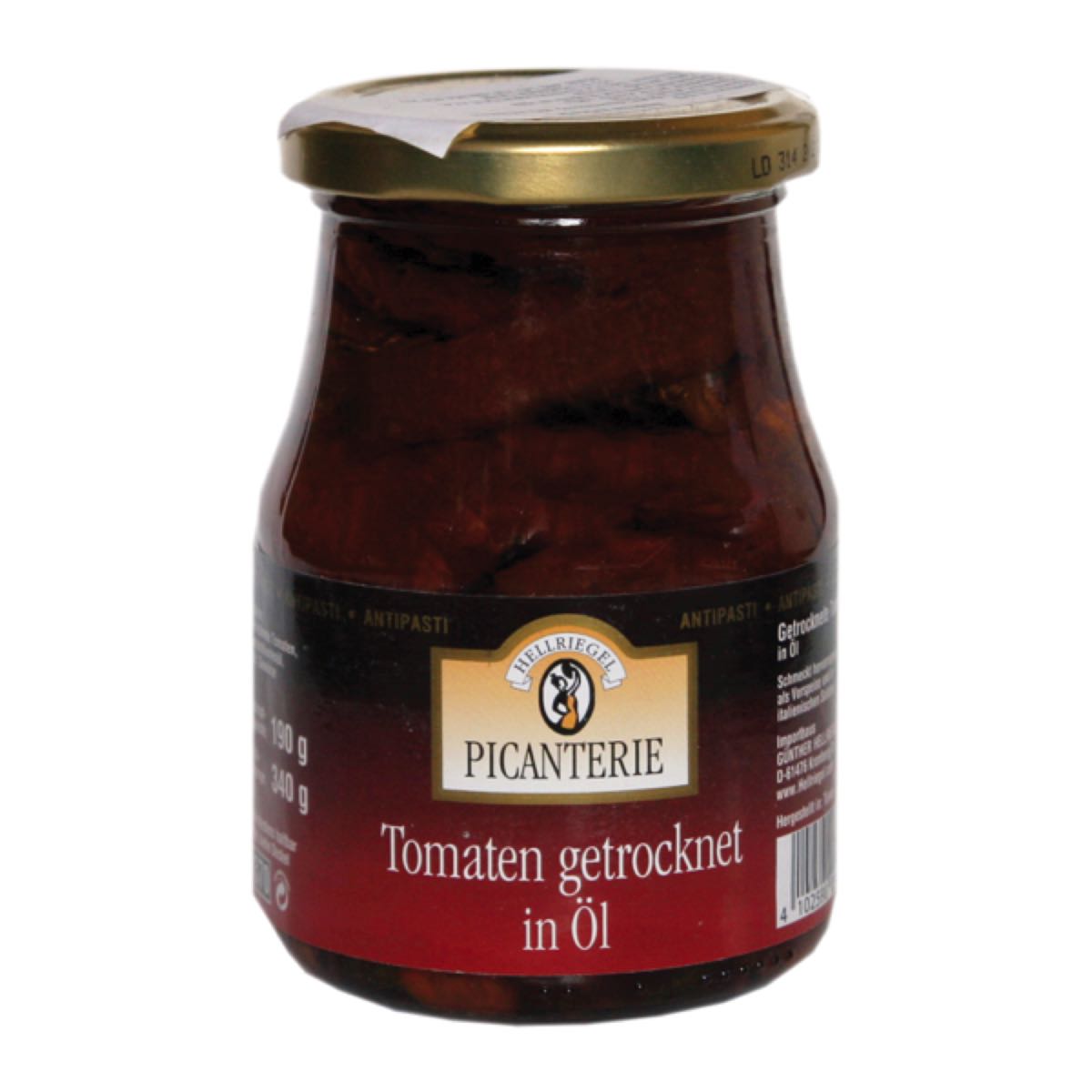 Sušená rajčata v rostlinném olejiObj.č.: 209EAN: 4102590034338Balení: Ve skle, 370 gProdejní jednotka: SkloMinimální trvanlivost: 24 měsícůSložení: Sušená rajčata, slunečnicový olej, sůl, koření. Hmotnost obsahu – 370g, hmotnost pevné složky – 190 g.