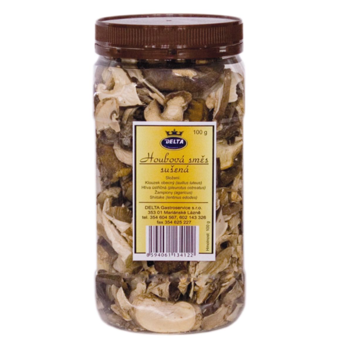 Houbová směs sušenáObj.č.: 412EAN: 8594061134122Balení: V dóze, 100 gProdejní jednotka: DózaMinimální trvanlivost: 12 měsícůSložení: Hlíva ústřičná (Pleurotus ostereatus), Klouzek obecný (Suillus leutus), Žampiony (Agaricus), Shiitake (Lentinus edodes).