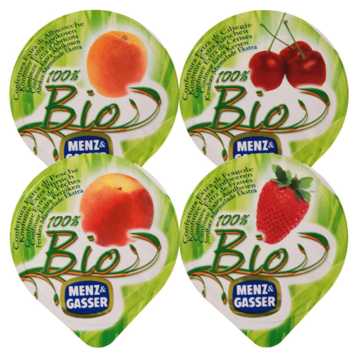 BIO džem – EXTRASortiment 4 druhů (4 x 25 porcí – jahody, višně, meruňky, broskve)Obj.č.: 415EAN: 8008660741129Balení: V kartonu 100 porcí á 25 gProdejní jednotka: KartonMinimální trvanlivost: 12 měsícůSložení: Třtinový cukr, ovoce, koncentrát z citronové šťávy, želírující prostředek – pektin. Vyrobeno ze 45 % ovoce na 100 g výrobku. Celkový obsah cukru 60 g na 100 g výrobku.