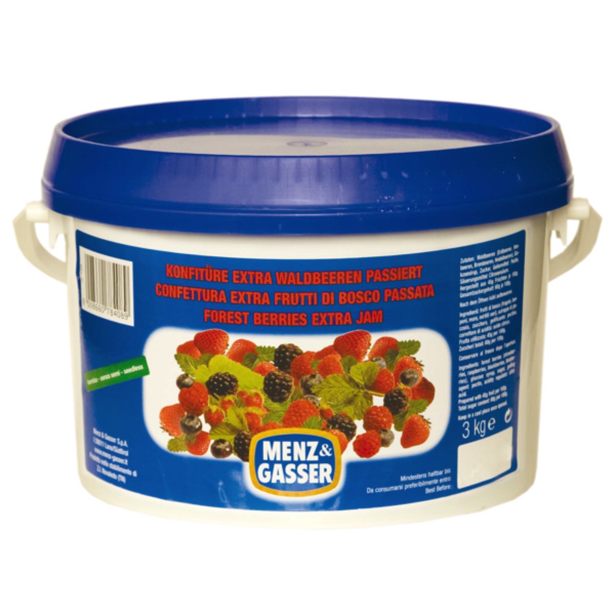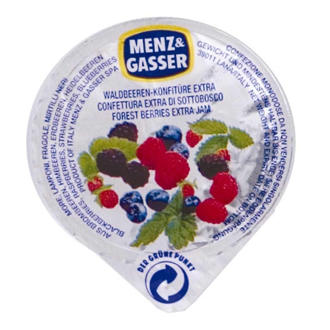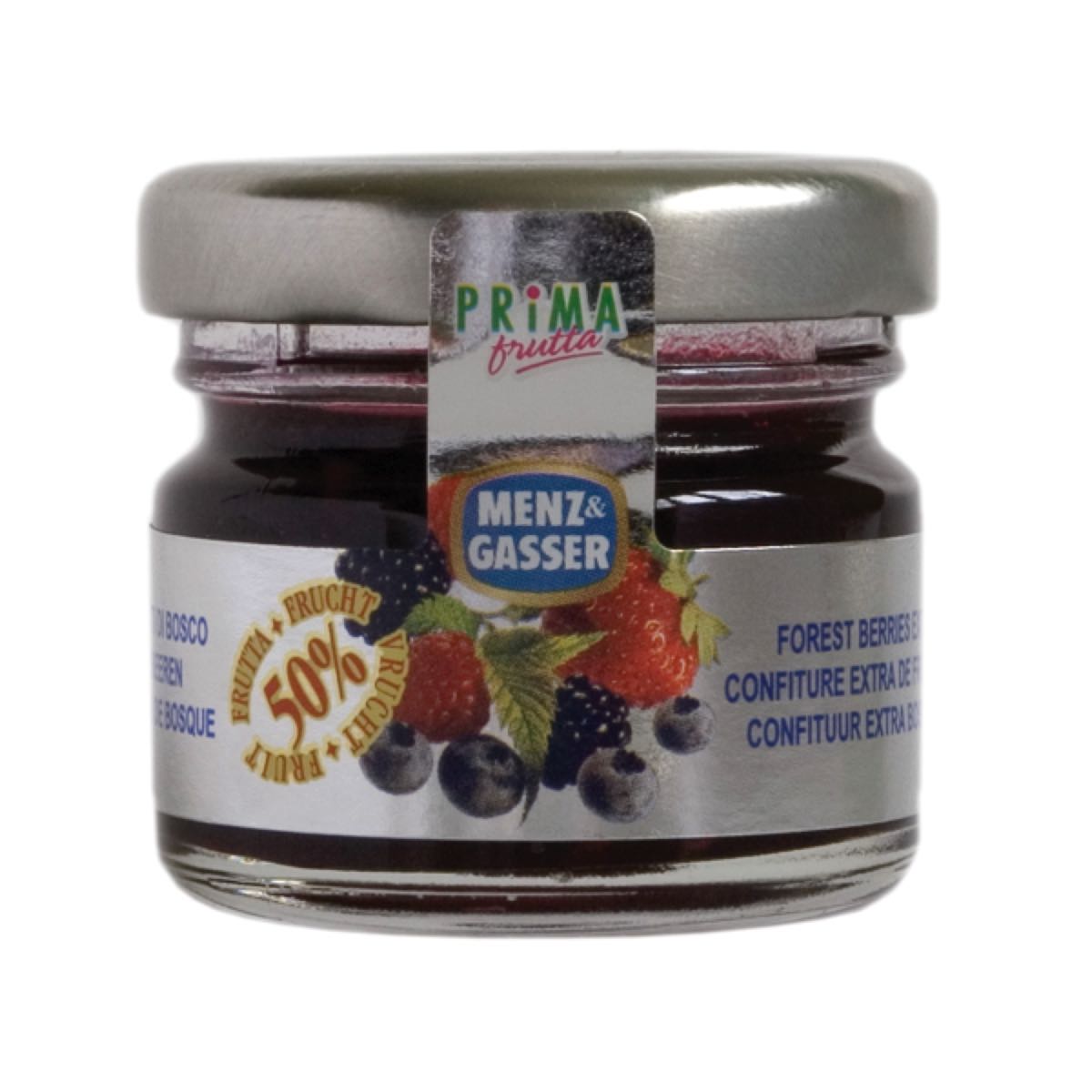 Džem lesní směsDekorativní porcovky ve skleObj.č.: 155EAN: 8008660120054Balení: V kartonu 48 porcí á 28 gProdejní jednotka: KartonMinimální trvanlivost: 18 měsícůSložení: Lesní plody (jahody, maliny, ostružiny, borůvky), cukr, glukózový sirup, pektin, kyselina citronová. Vyrobeno z 50 g plodů na 100 g džemu. Celkový obsah cukru 60 g na 100 g džemu. Bez chemických konzervačních prostředků.