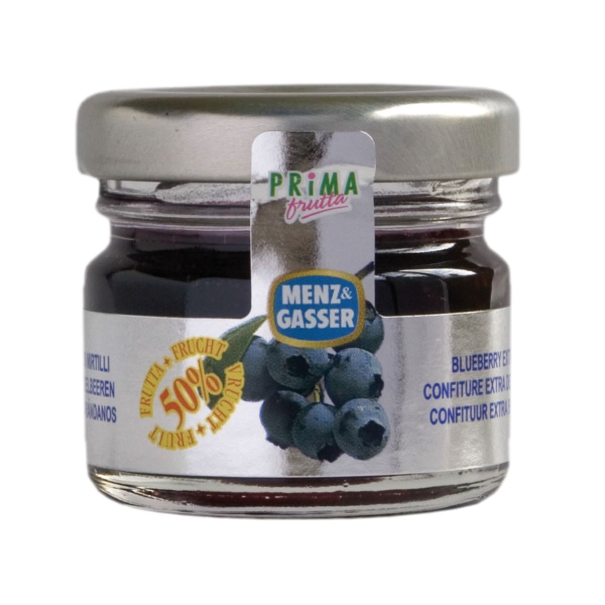 Džem borůvkovýDekorativní porcovky ve skleObj.č.: 154EAN: 8008660120078Balení: V kartonu 48 porcí á 28 gProdejní jednotka: KartonMinimální trvanlivost: 18 měsícůSložení: Borůvky, cukr, glukózový sirup, pektin, kyselina citronová. Vyrobeno z 50 g plodů na 100 g džemu. Celkový obsah cukru 60 g na 100 g džemu. Bez chemických konzervačních prostředků.