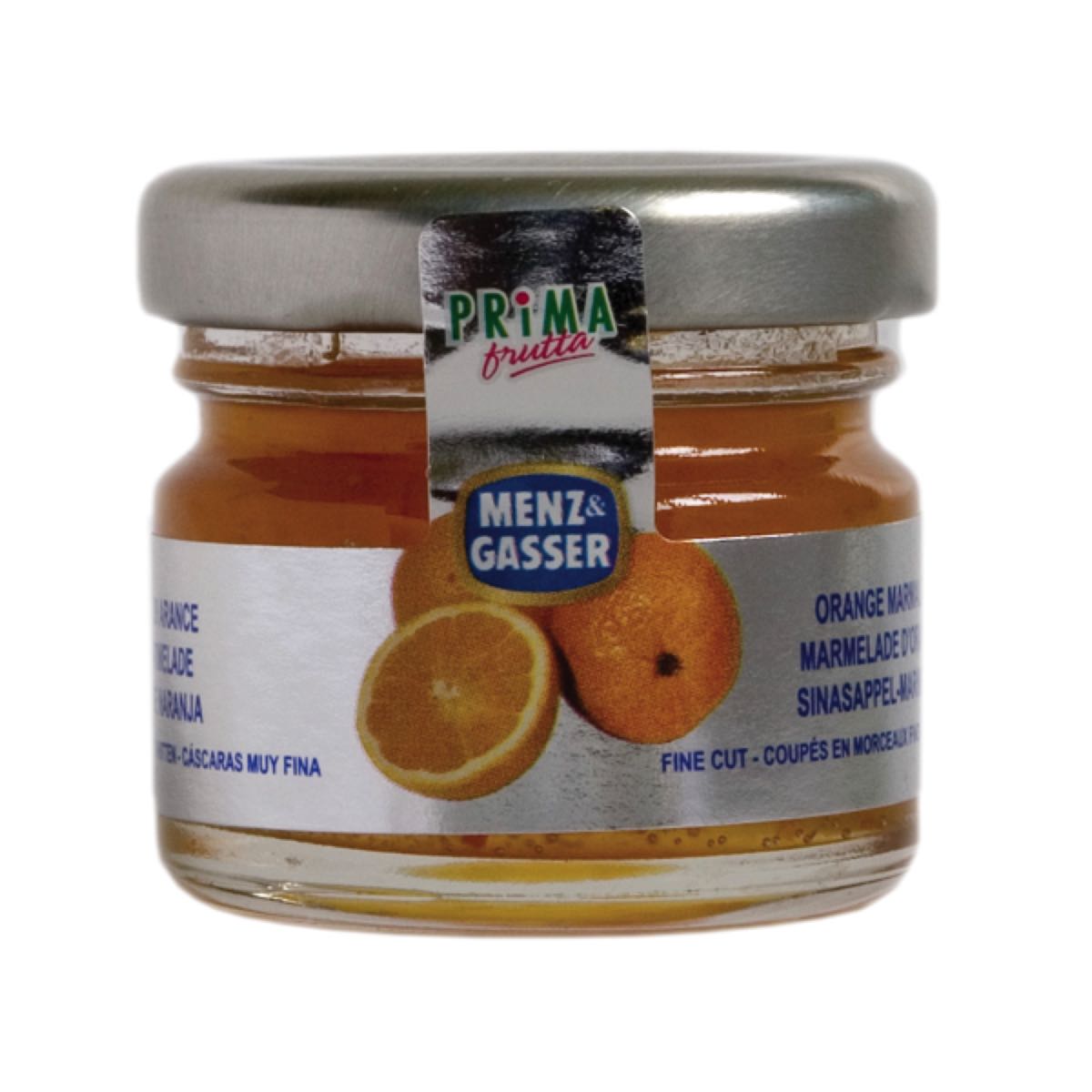Džem pomerančovýDekorativní porcovky ve skleObj.č.: 156EAN: 8008660120023Balení: V kartonu 48 porcí á 28 gProdejní jednotka: KartonMinimální trvanlivost: 18 měsícůSložení: Pomeranče, cukr, glukózový sirup, pektin, kyselina citronová. Vyrobeno z 50 g plodů na 100 g džemu. Celkový obsah cukru 60 g na 100 g džemu. Bez chemických konzervačních prostředků.