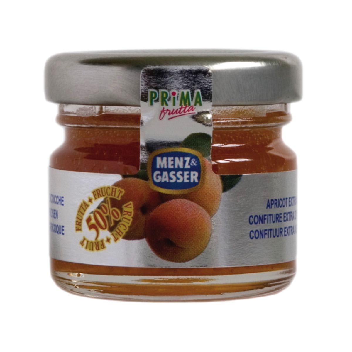 Džem meruňkovýDekorativní porcovky ve skleObj.č.: 158EAN: 8008660120016Balení: V kartonu 48 porcí á 28 gProdejní jednotka: KartonMinimální trvanlivost: 18 měsícůSložení: Meruňky, cukr, glukózový sirup, pektin, kyselina citronová. Vyrobeno z 50 g plodů na 100 g džemu. Celkový obsah cukru 60 g na 100 g džemu. Bez chemických konzervačních prostředků.