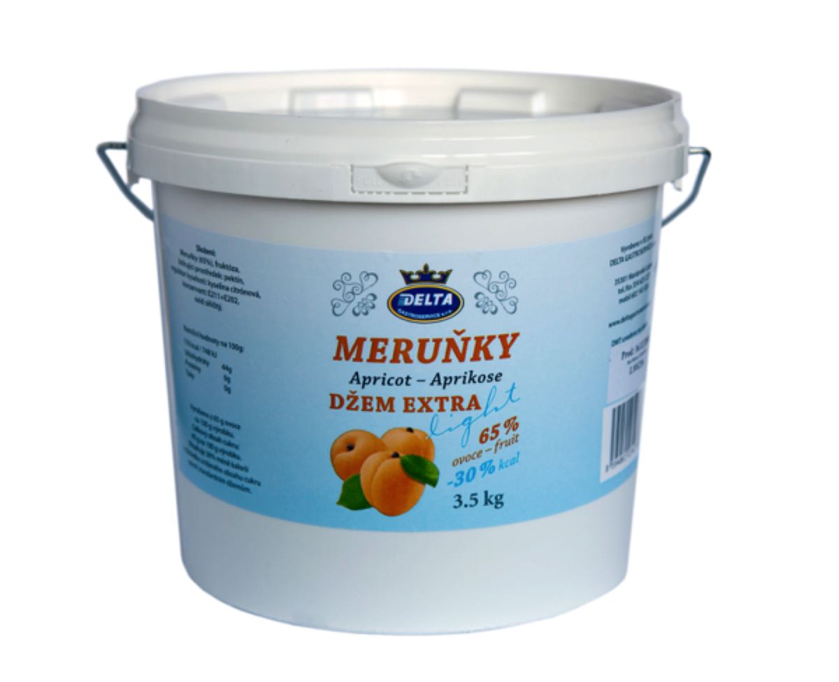 Meruňkový džem lightObj.č.: 423EAN: 8594061134238Balení: V kartonu 120 porcí á 20 gProdejní jednotka: KartonMinimální trvanlivost: 12 měsícůSložení: Meruňky (65 %), fruktóza, želírující prostředek: pektin, regulátor kyselosti: kyselina citrónová, konzervant: E211+E202, oxid siřičitý. Vyrobeno ze 65 g ovoce na 100 g výrobku.