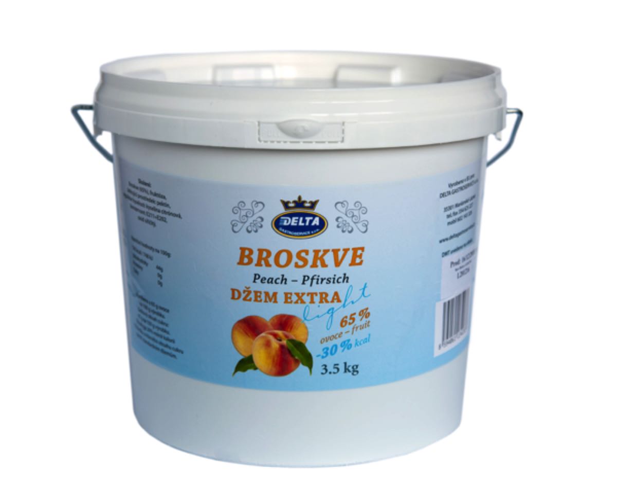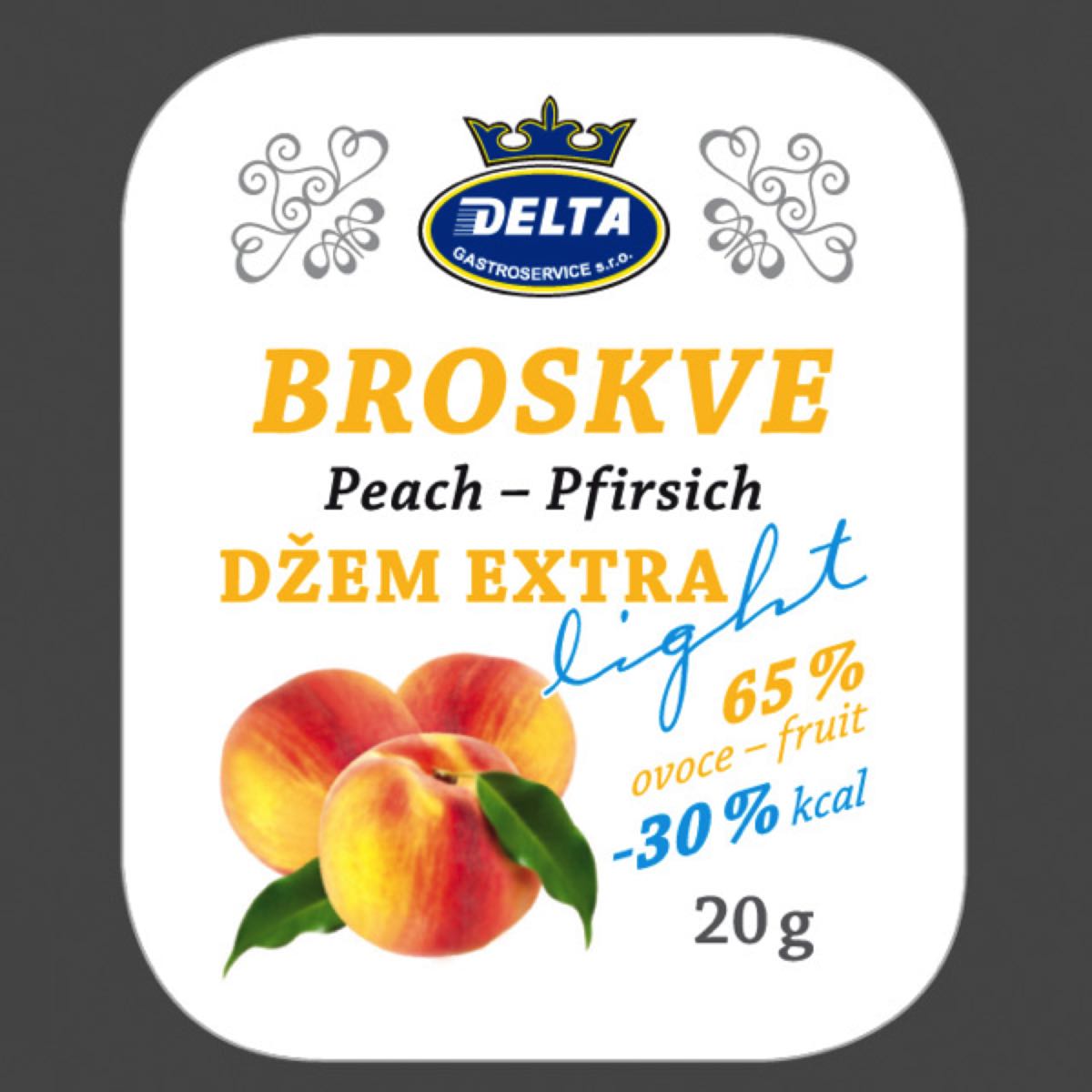Broskvový džem lightObj.č.: 424EAN: 8594061134245Balení: V kartonu 120 porcí á 20 gProdejní jednotka: KartonMinimální trvanlivost: 12 měsícůSložení: Broskve (65 %), fruktóza, želírující prostředek: pektin, regulátor kyselosti: kyselina citrónová, konzervant: E211+E202, oxid siřičitý. Vyrobeno ze 65 g ovoce na 100 g výrobku.