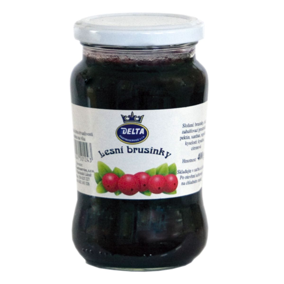 DELTA – lesní brusinky STANDARDObj.č.: 190EAN: 8594061131909Balení: Ve skle, 400 g (370 ml), 12 ks v kartonuProdejní jednotka: SkloMinimální trvanlivost: 24 měsícůSložení: Lesní brusinky, cukr, pektin, kyselina citronová.