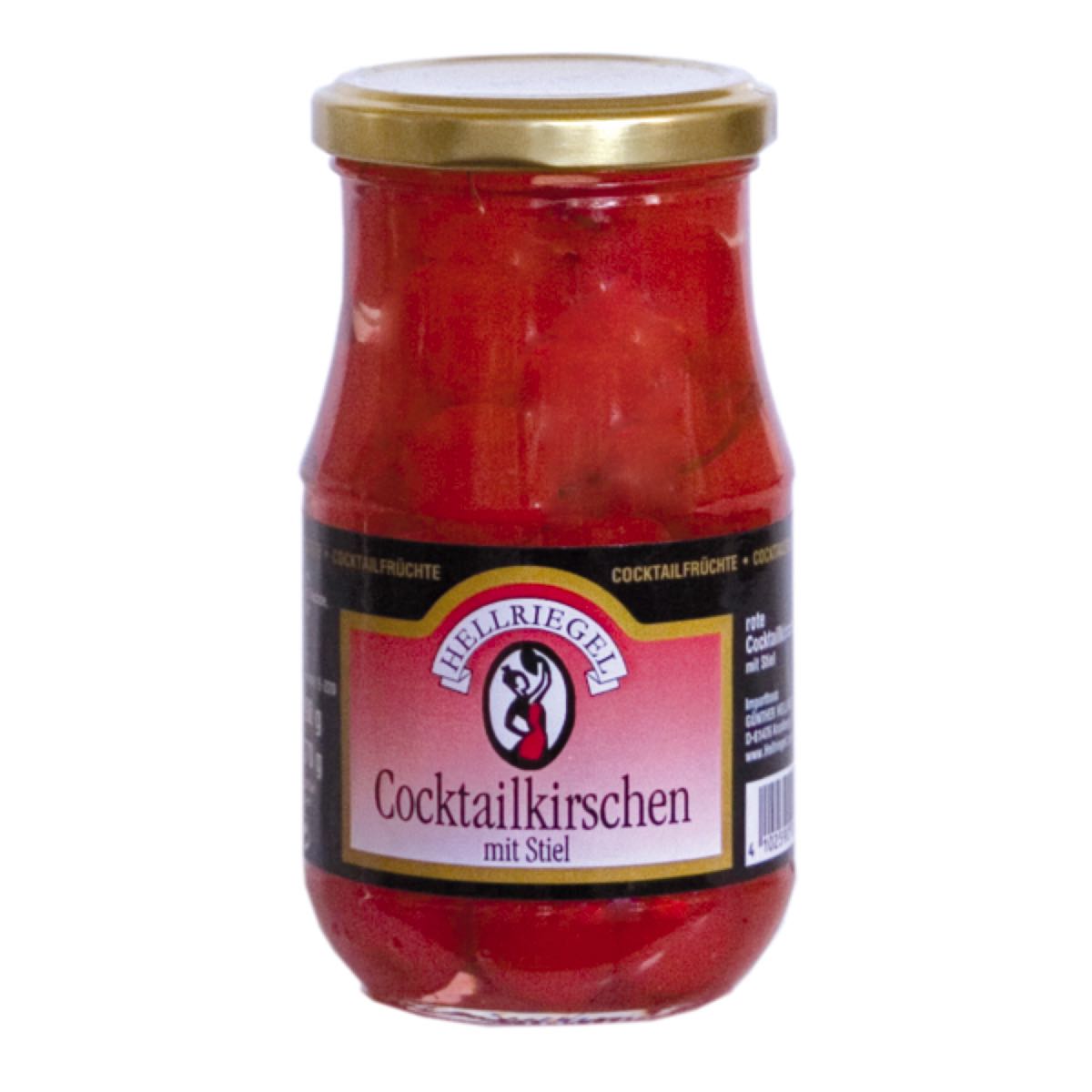 Koktejlové třešně červené, se stopkouBez jaderObj.č.: 196EAN: 4102590007363Balení: Ve skle, 370 gProdejní jednotka: SkloMinimální trvanlivost: 36 měsícůSložení: Třešně, cukr, glukózový cukr, voda, regulátor kyselosti – kyselina citronová, aroma, barvivo E 127, Antioxydant E 220.