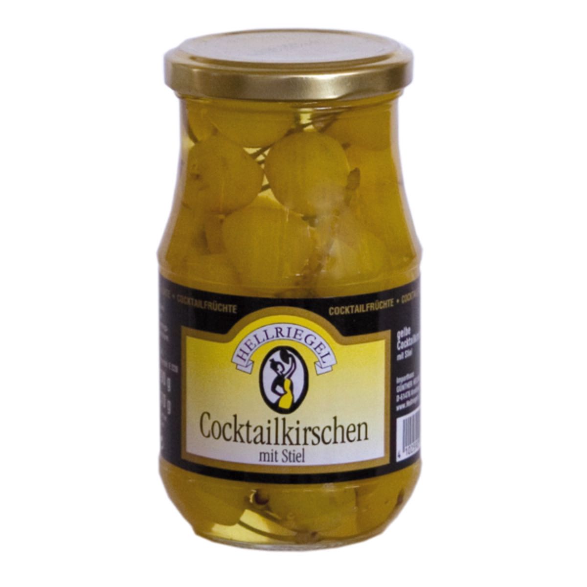 Koktejlové třešně žluté, se stopkouBez jaderObj.č.: 214EAN: 4102590073740Balení: Ve skle, 370 gProdejní jednotka: SkloMinimální trvanlivost: 36 měsícůSložení: Třešně, cukr, glukózový cukr, voda, regulátor kyselosti – kyselina citronová, aroma, barvivo E 127, Antioxydant E 220.